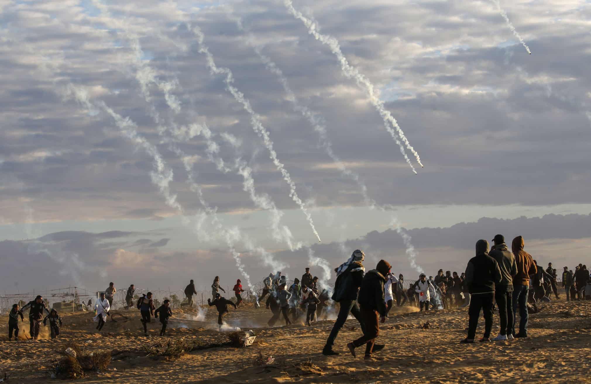 Gaza - Lính Do Thái bắn hơi cay vào đám người biểu tình Palestine ở biên giới giữa Gaza và Israel.