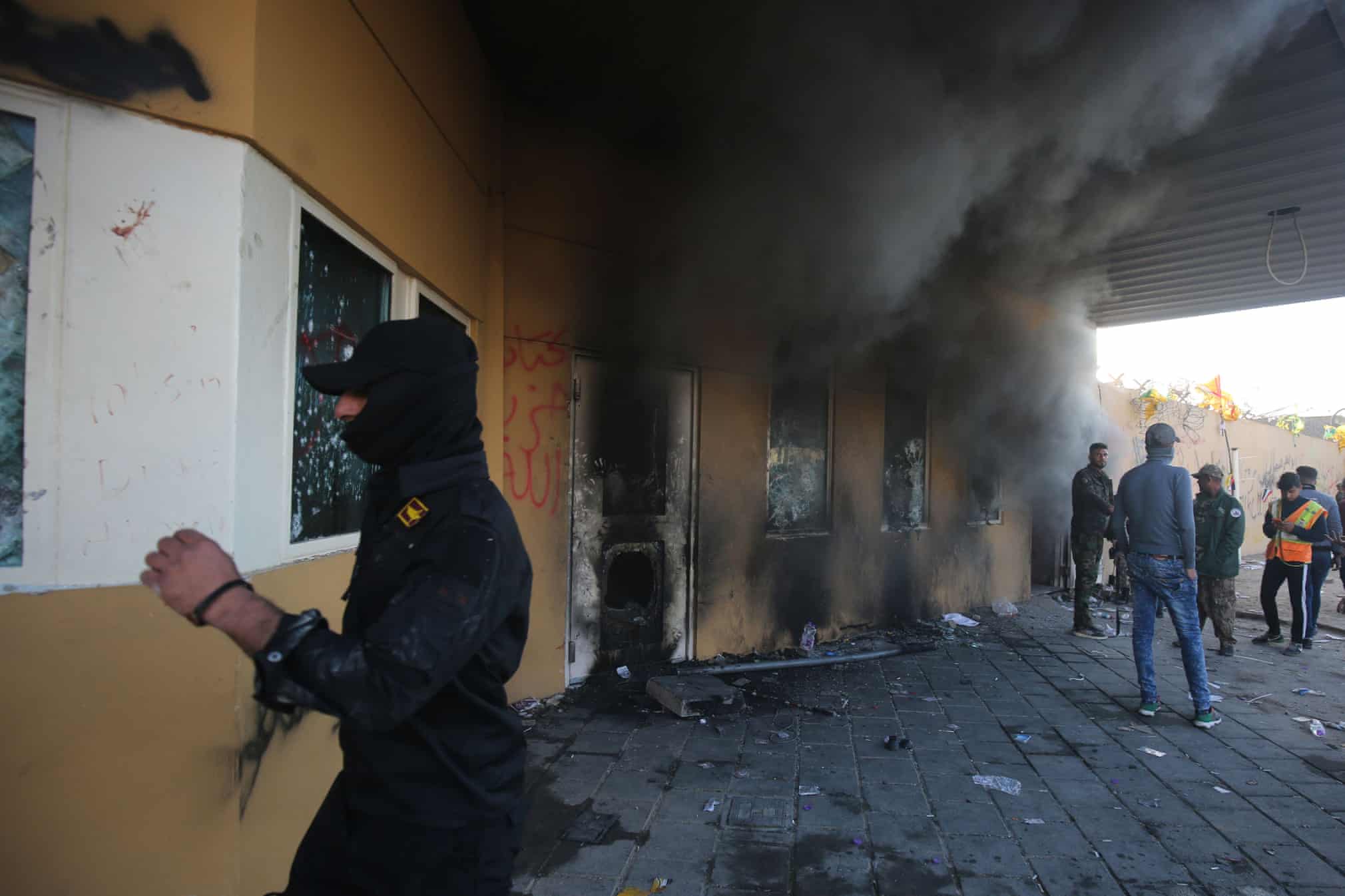 Baghdad, Iraq - Sau cuộc không kích sát hại một số phiến quân thân Iran ở khu vực phía tây của Iraq, đám dân ủng hộ phiến quân Hashd al-Shaabi đã tấn công và nổi lửa đốt Toà Đại Sứ Hoa Kỳ ở Iraq.