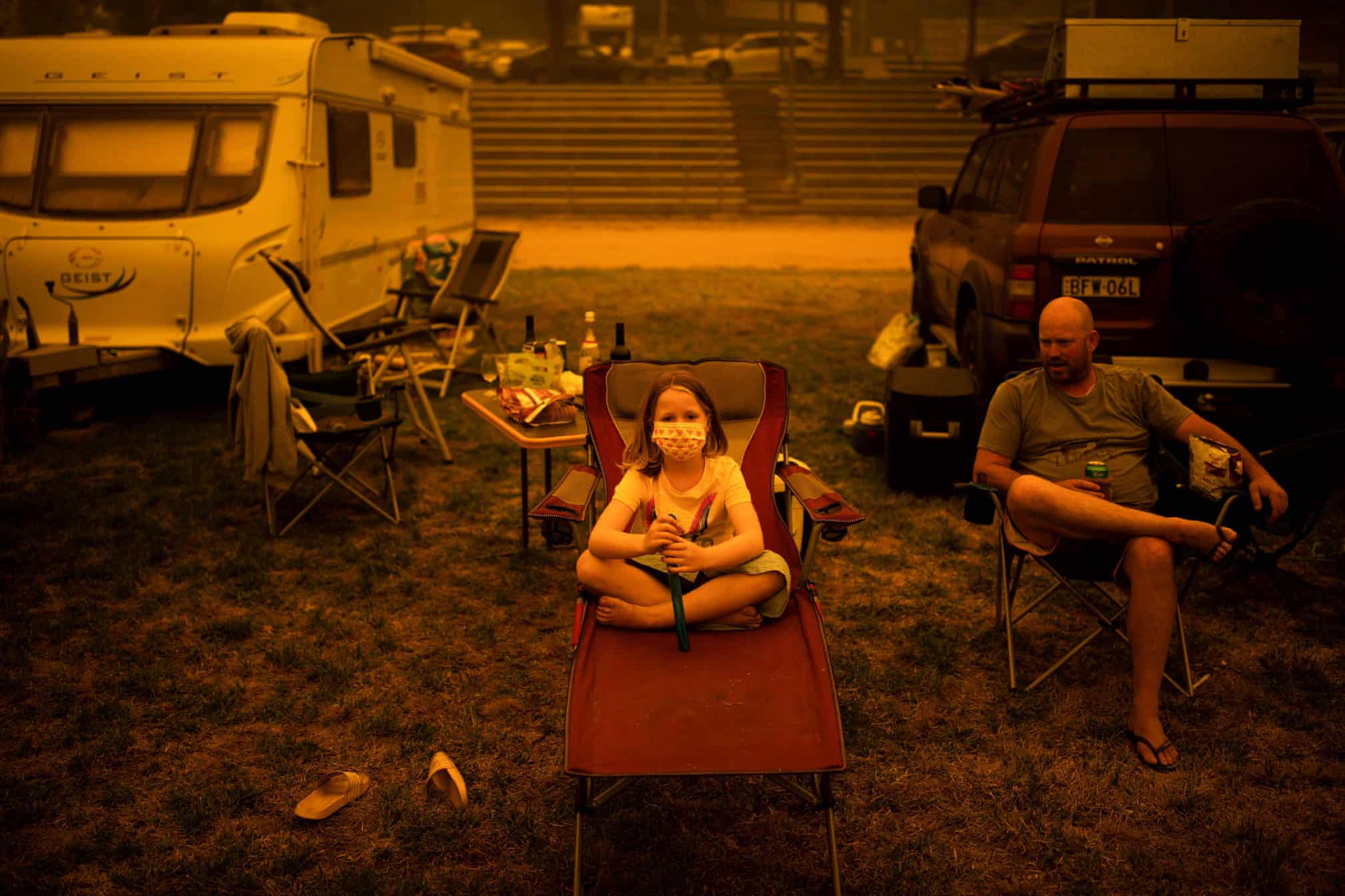 Bega, Australia - Hai cha con, trong số hàng ngàn người, đang ngồi ở một khu đất của thành phố Bega, phía nam của New South Wales sau khi phải di tản lánh nạn cháy rừng.