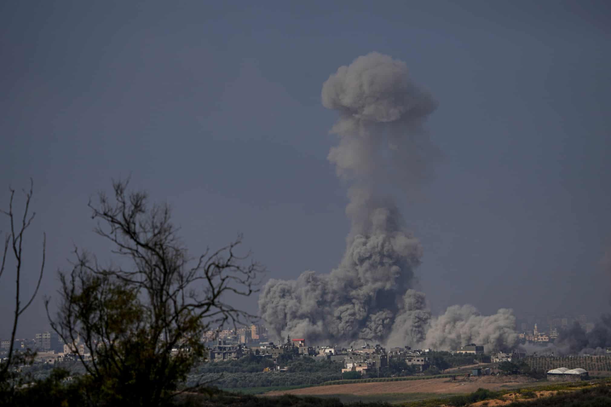 Israel - Cột khói bốc lên sau cuộc không kích của Israel ở Dải Gaza, nhìn từ miền nam Israel. Các quốc gia Ả Rập liên kết với nhau để thách thức Israel và những người ủng hộ từ phương Tây, chấm dứt vụ đánh bom ở Gaza khi bắt đầu cuộc tranh luận khẩn cấp và hiếm hoi kéo dài hai ngày tại đại hội đồng Liên Hiệp Quốc (Ảnh: Ariel Schalit/AP)